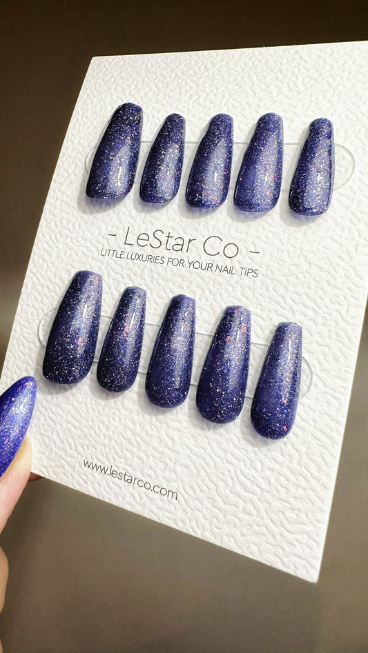Reusable Galaxy Glitz | Nails Premium Press on Nails Gel Manicure | Fake Nails | Handmade | Lestarco nails 487zz