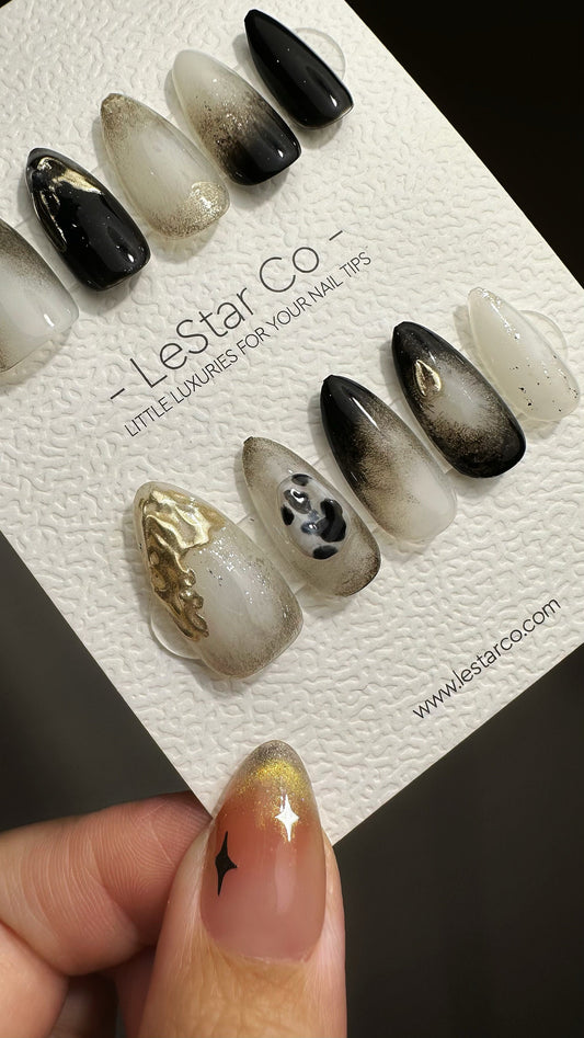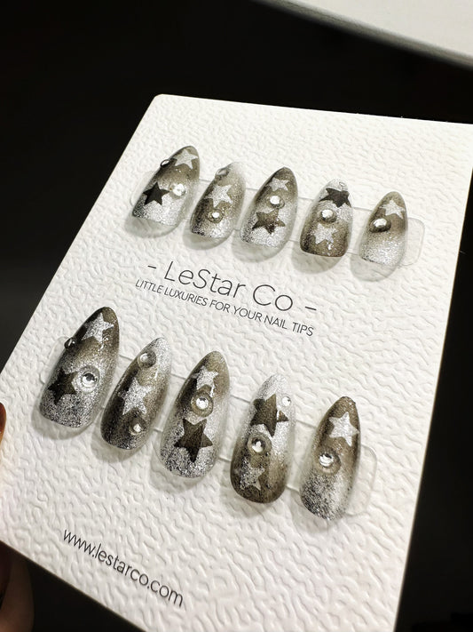 Reusable Galactic Allure Black Stars | Premium Press on Nails Gel | Fake Nails | Cute Fun Colorful Gel Nail Artist faux nails QN461