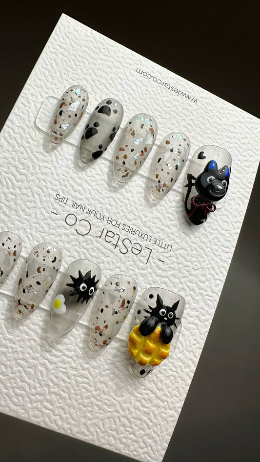 Reusable Cat and Dog 3D Design | Premium Press on Nails Gel Manicure | Fake Nails | Handpainted by Professional Nail Artist faux nails YR570