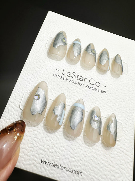 Reusable Ethereal Marble | Premium Press on Nails Gel | Fake Nails | Cute Fun Colorful Gel Nail Artist faux nails QN472