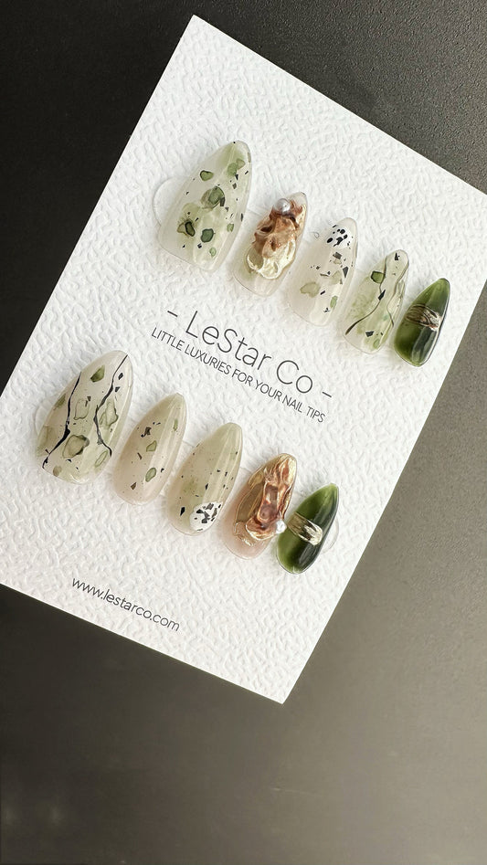 Reusable Enchanted Forest | Premium Press on Nails Gel Hand Painted Pressons Customizable Gel Nail Artist faux nails BB876