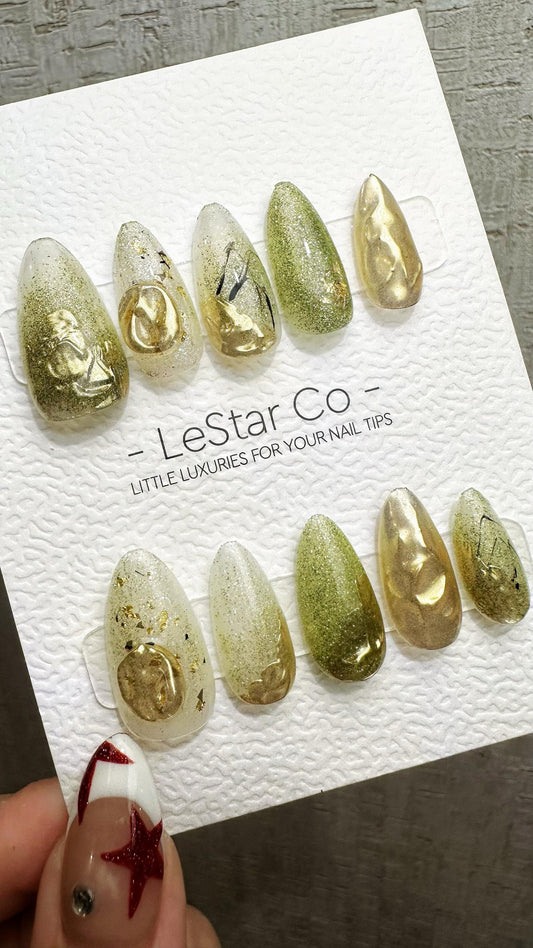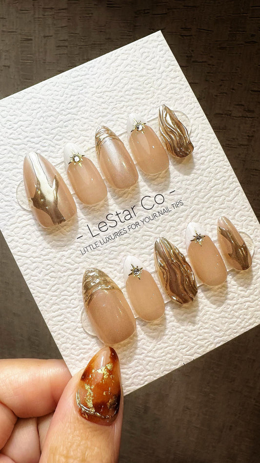 Reusable Golden Mirage| Premium Press on Nails Gel Hand Painted Pressons Customizable Gel Nail Artist faux nails TMR816