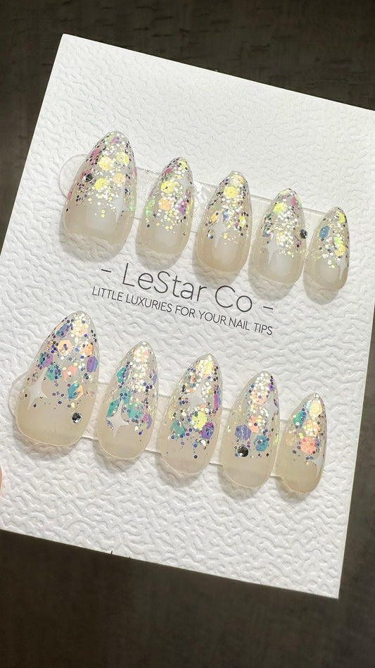 Reusable Celestial Sparkle Fade| Premium Press on Nails Gel | Fake Nails | Cute Fun Colorful Gel Nail Artist ML844