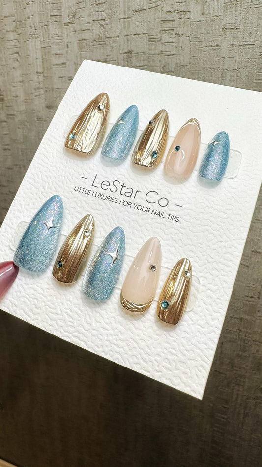 Reusable Celestial Elegance Cat Eye Effect | Premium Press on Nails Gel Hand Painted Pressons Customizable Gel Nail Artist faux nails WM865