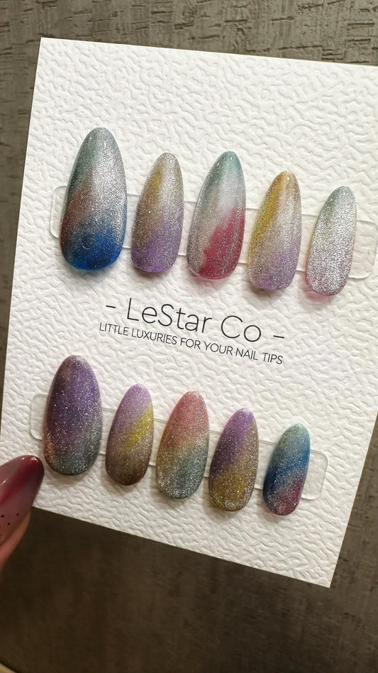 Reusable Dreamy Gradient Cat eye | Nails Premium Press on Nails Gel Manicure Handprint Pressons Handmade | Lestarco faux nails WM859