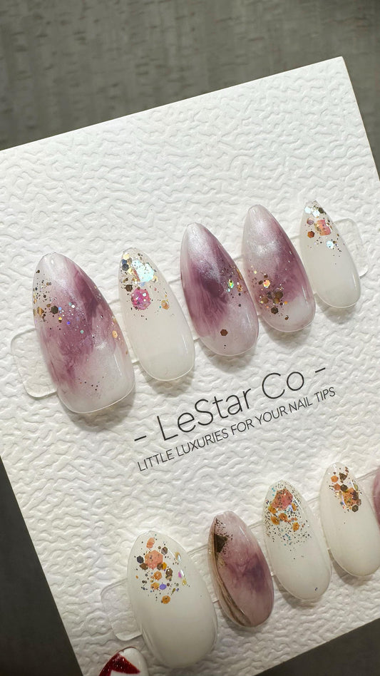 Reusable Lavender Sparkle | Premium Handmade Press on Nails Gel | Fake Nails | Cute Fun Colorful Gel Nail Artist faux nails BB895