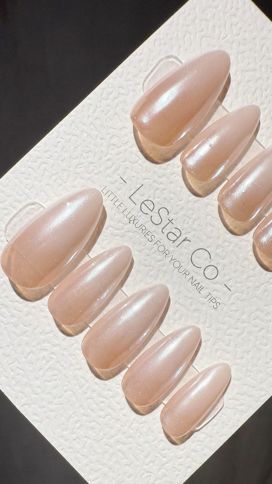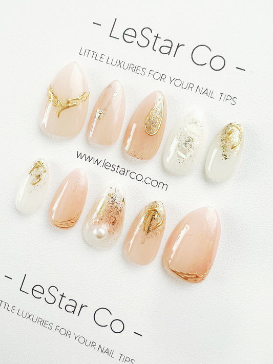 Reusable Peachy Shine | Premium Press on Nails Gel Hand Painted Pressons Customizable Gel Nail Artist faux nails TMR1005