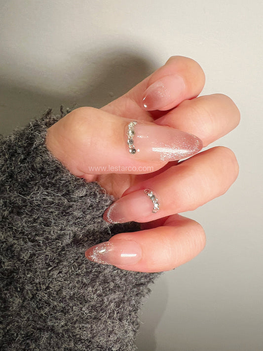 Reusable Nude and Pearl | Premium Press on Nails Gel | Fake Nails | Cute Fun Colorful Gel Nail Artist faux nails ML 287