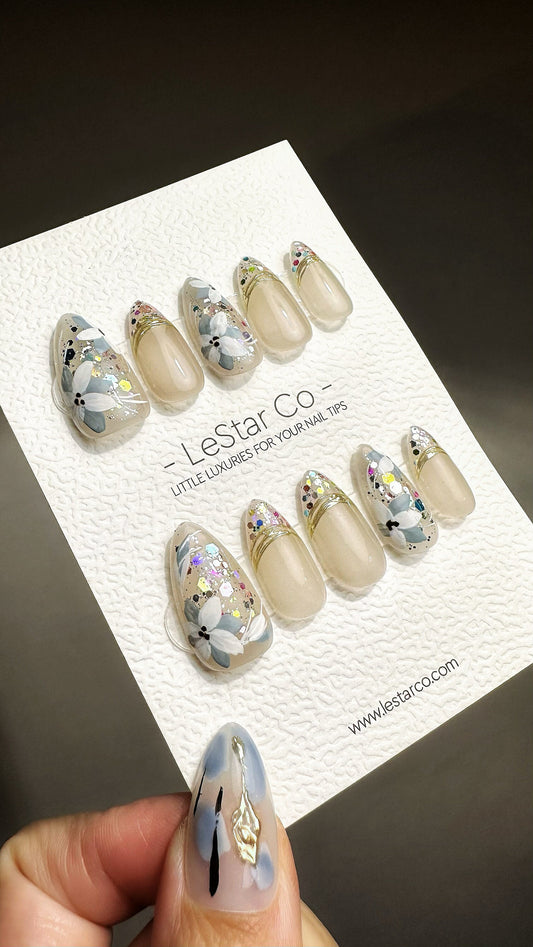 Reusable Botanical Bliss | Premium Press on Nails Gel | Fake Nails | Cute Fun Colorful Gel Nail Artist faux nails QN447