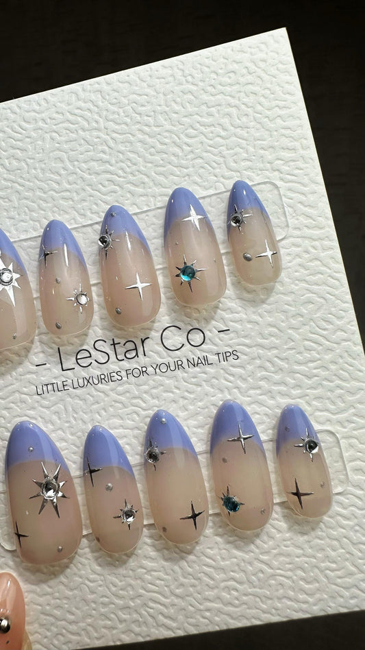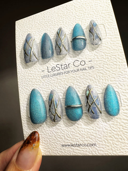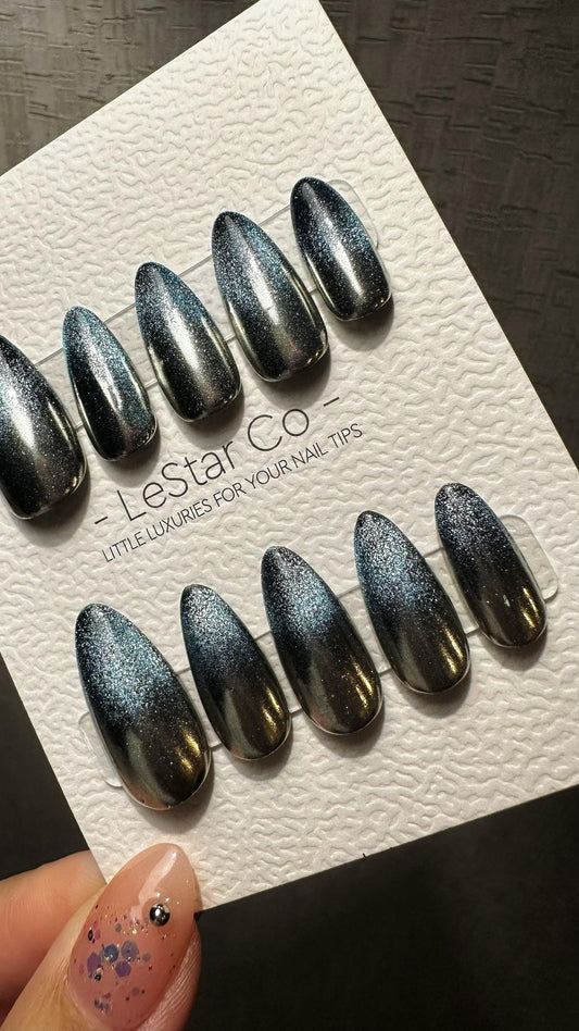 Reusable Meteor Shower Mist Cat Eye Effect |Premium Presson Nails Gel Manicure Hand Painted Pressons Handmade | Lestarco faux nails TMR829