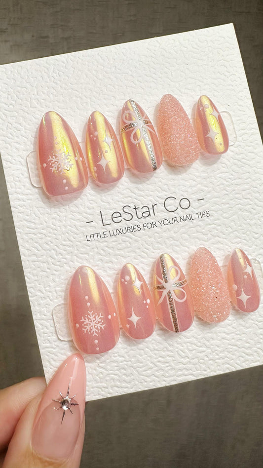 Reusable Frosted Peach Glow | Premium Press on Nails Gel Hand Painted Pressons Customizable Gel Nail Artist faux nails ML932