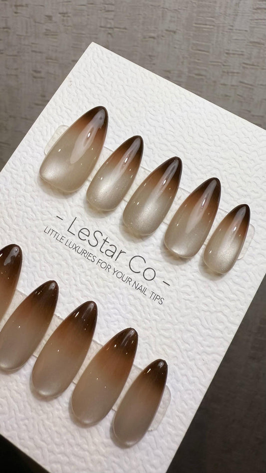 Reusable Morning Mocha | Premium Press on Nails Gel | Fake Nails | Cute Fun Colorful Gel Nail Artist faux nails ML292