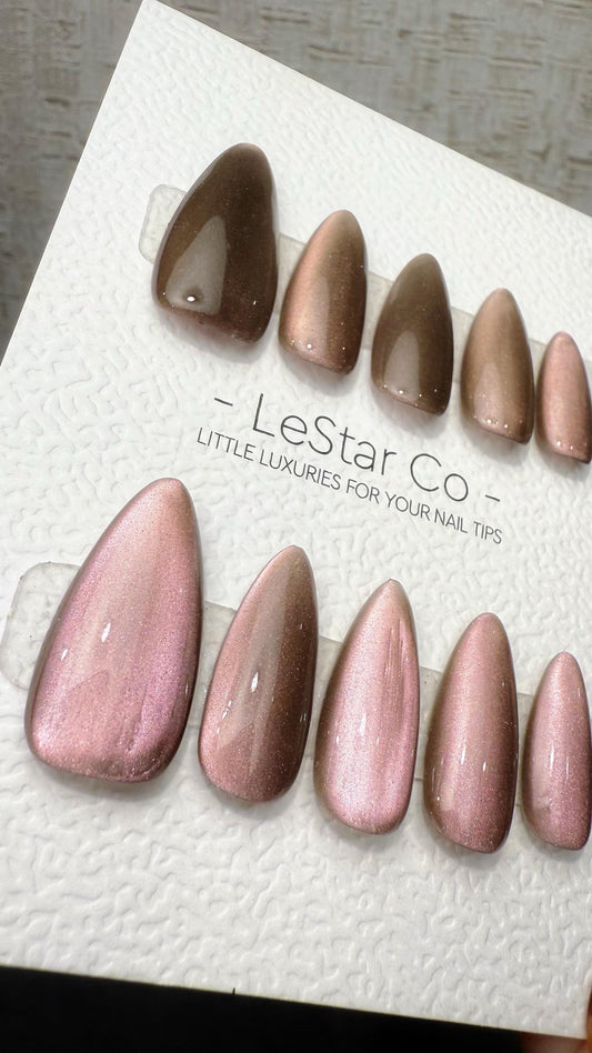Reusable Taupe Mirage Cat Eye Effect | Nails Premium Press on Nails Gel Manicure Handprint Pressons Handmade | Lestarco nails WM1024
