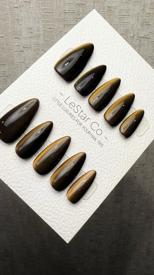 Reusable Tiger's Eye Cat Eye Effect | Nails Premium Press on Nails Gel Manicure Handprint Pressons Handmade | Lestarco nails WM1031