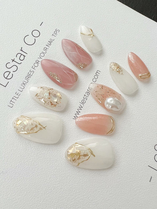 Reusable Blush Blossom | Premium Press on Nails Gel | Fake Nails | Cute Fun Colorful Gel Nail Artist faux nails ML265