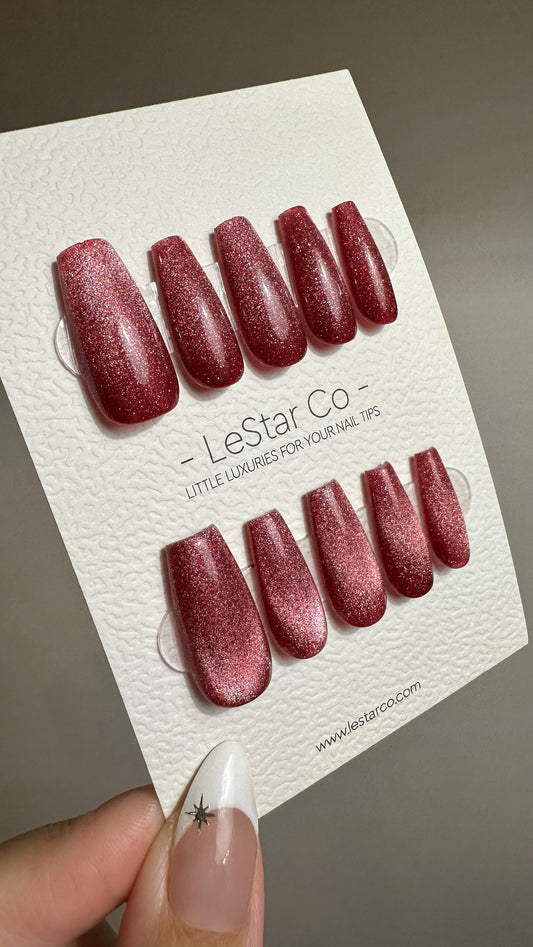 Reusable Wine Red Cat eye | Nails Premium Press on Nails Gel Manicure | Fake Nails | Handmade | Lestarco faux nails TMR515