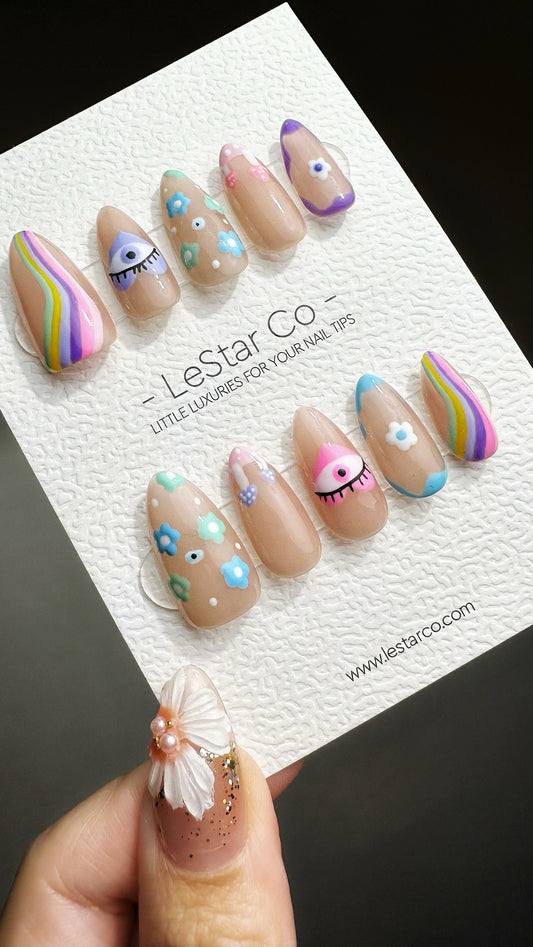 Reusable Whimsical Eye Candy | Premium Press on Nails Gel Manicure | Fake Nails | Handmade | Artificial nails YR766
