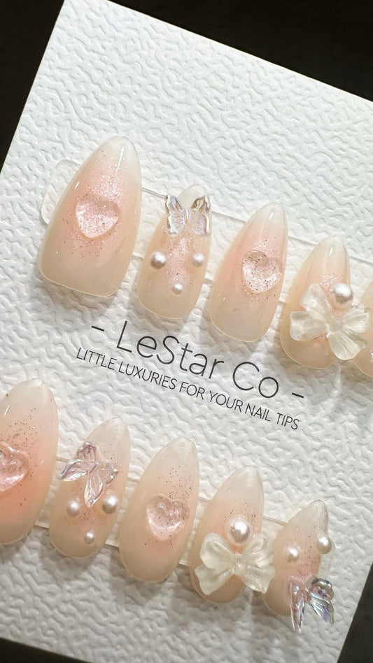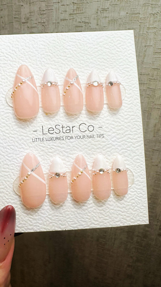 Reusable Pearl Strands | Nails Premium Press on Nails Gel Manicure Hand Painted Pressons Handmade | Lestarco faux nails WM870