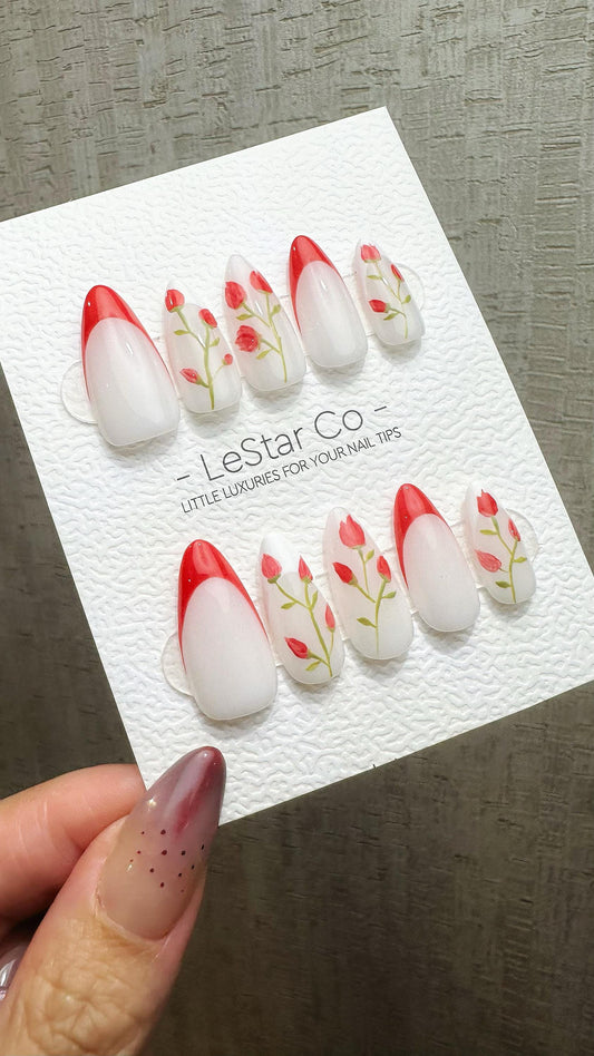 Reusable Rosebud Pink French Tip | Nails Premium Press on Nails Gel Manicure Hand Painted Pressons Handmade | Lestarco faux nails WM863