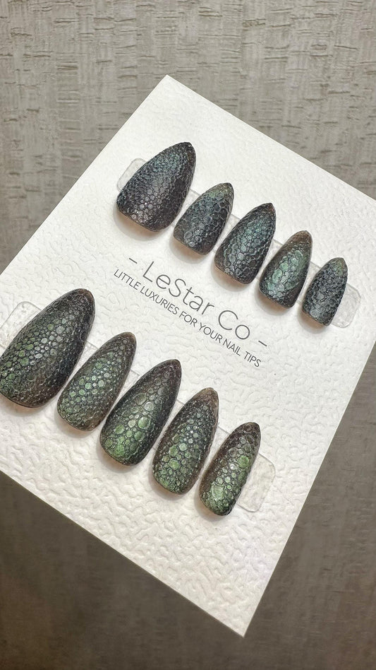 Reusable Mystic Forest Cat Eye Effect | Premium Press on Nails Gel Hand Painted Pressons Customizable Gel Nail Artist fake nails WM943