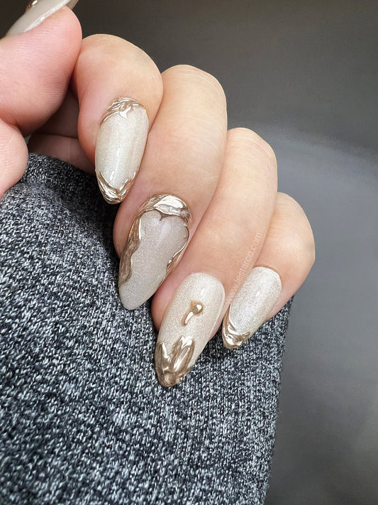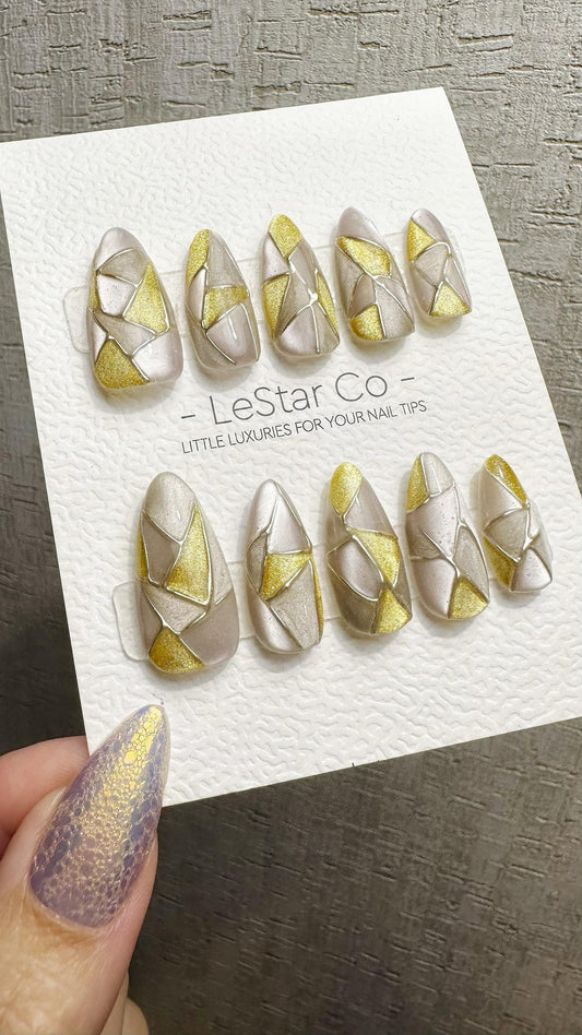 Reusable Golden Shards | Premium Handmade Press on Nails Gel | Fake Nails | Cute Fun Colorful Gel Nail Artist faux nails WM976