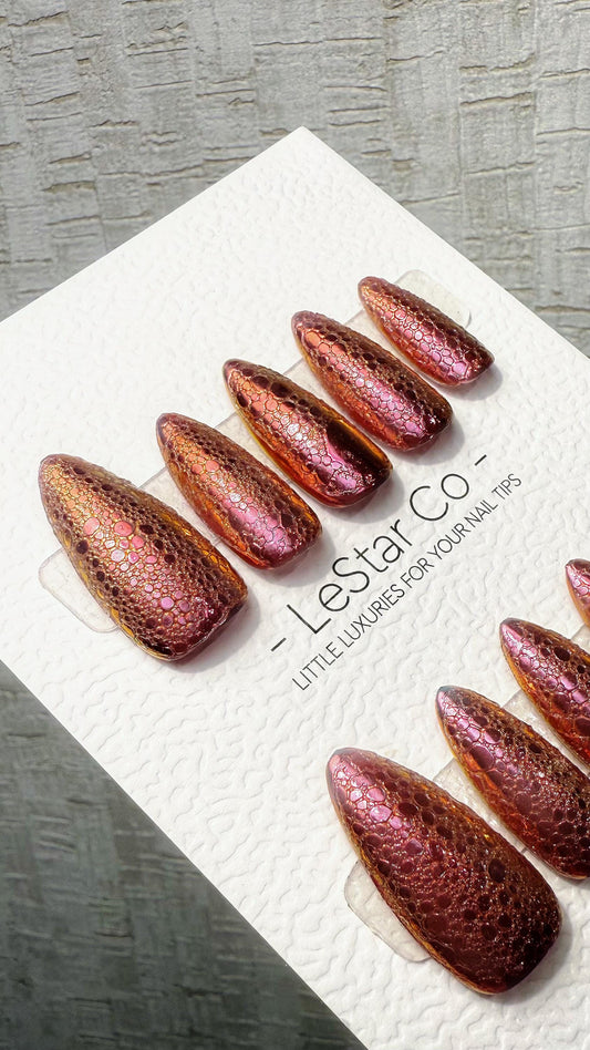 Reusable Golden Molten Peach Bubble Effect | Premium Press on Nails Gel Hand Painted Pressons Customizable Gel Nail fake nails WM1027