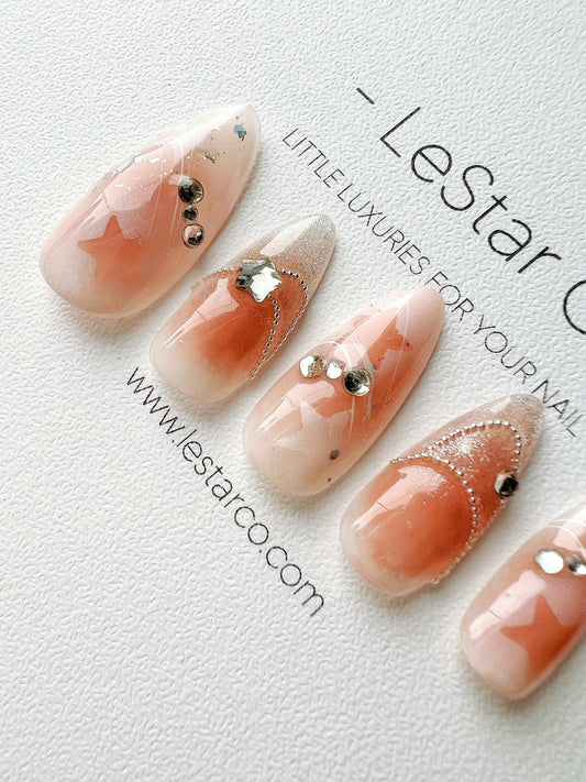 Reusable Peach Meteor | Premium Press on Nails Gel | Fake Nails | Cute Fun Colorful Gel Nail Artist faux nails BB309